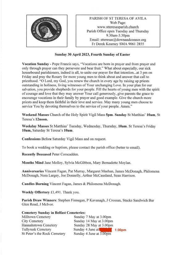 © The Parish of St Teresa of Ávila, Glen Road, Belfast 2018 – 2025All Rights Reserved