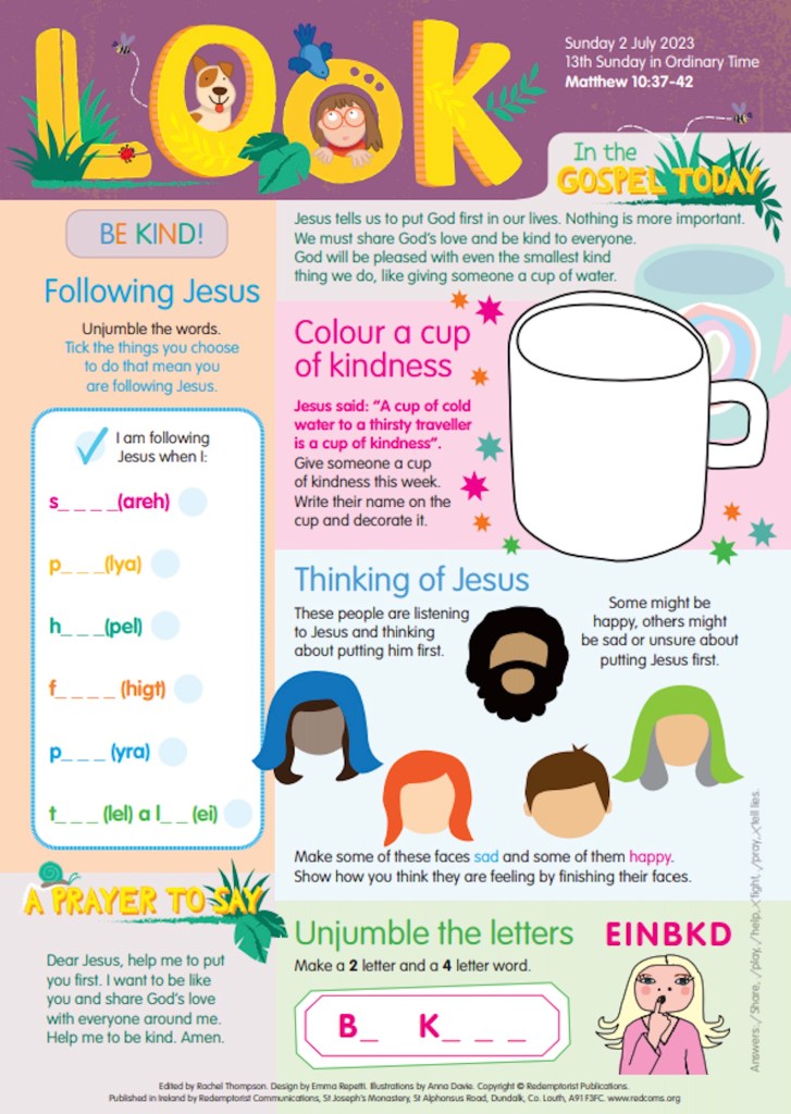 In The Gospel Today Sunday 2 July 2023 13th Sunday in Ordinary Time Matthew 10:37-42