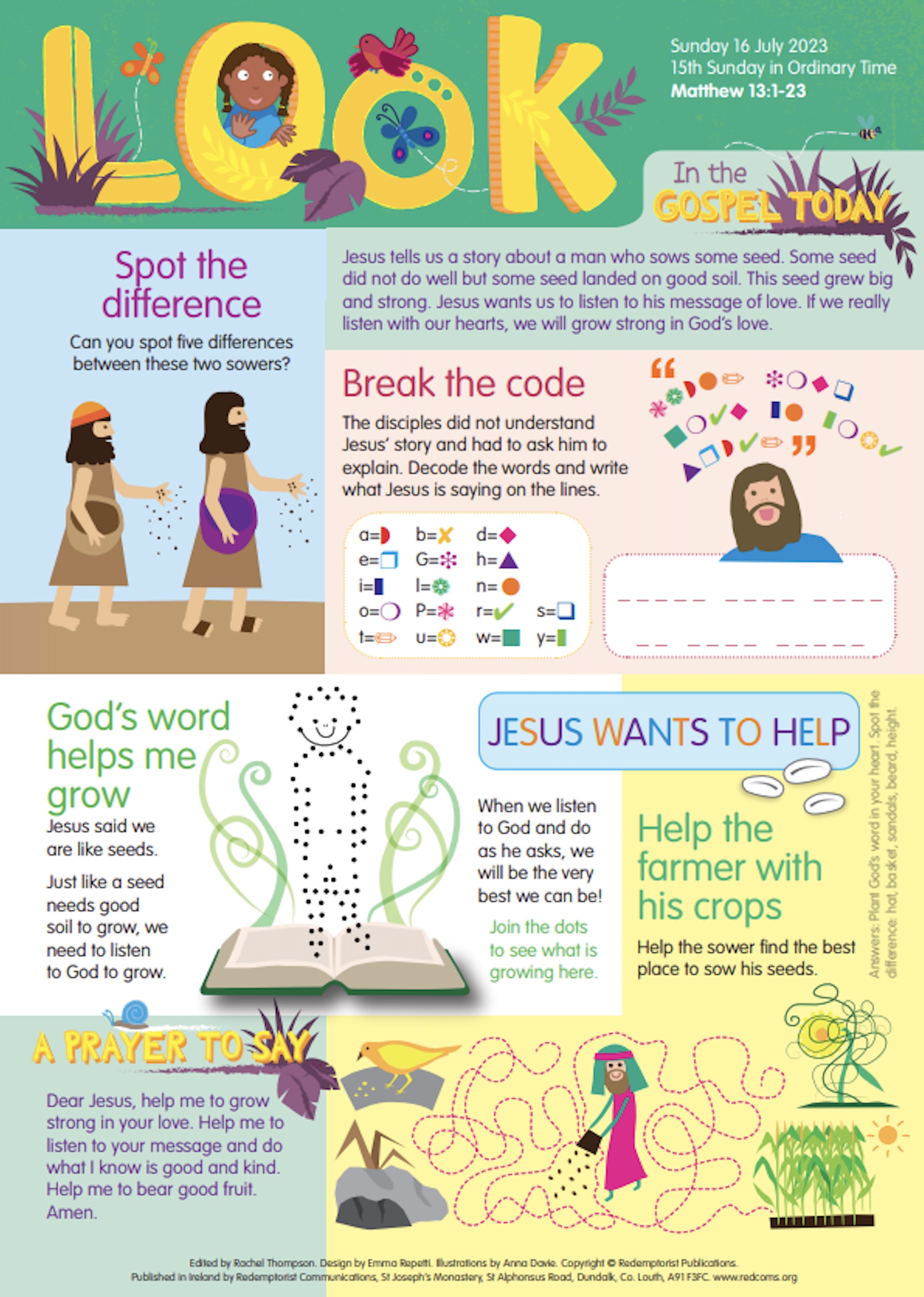 In The Gospel Today Sunday 16 July 2023 15th Sunday in Ordinary Time Matthew 13:1-23