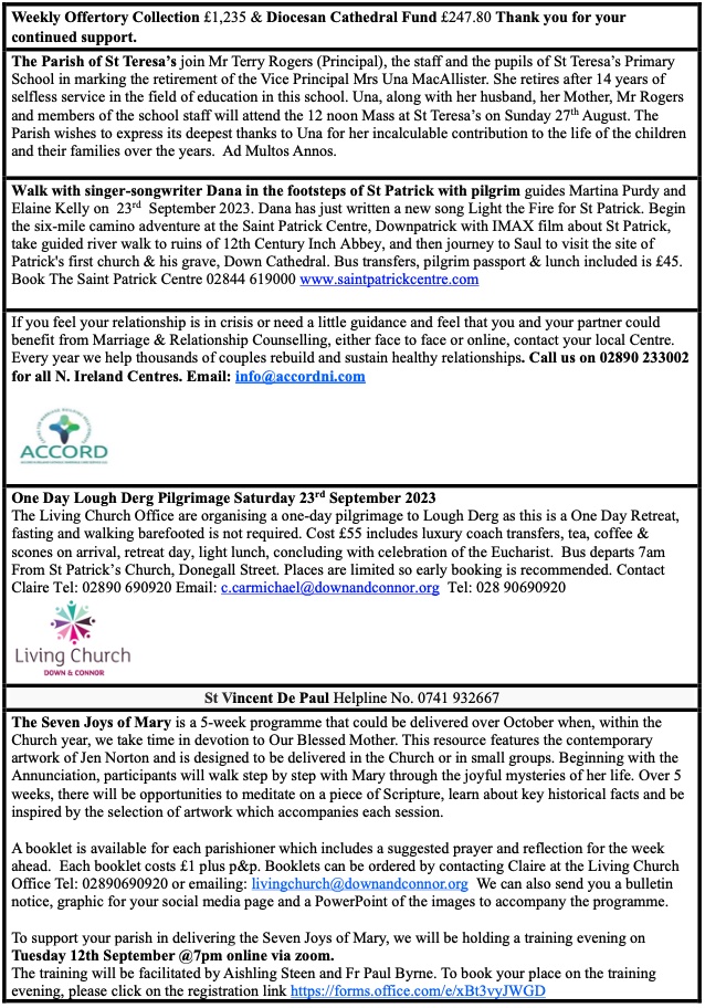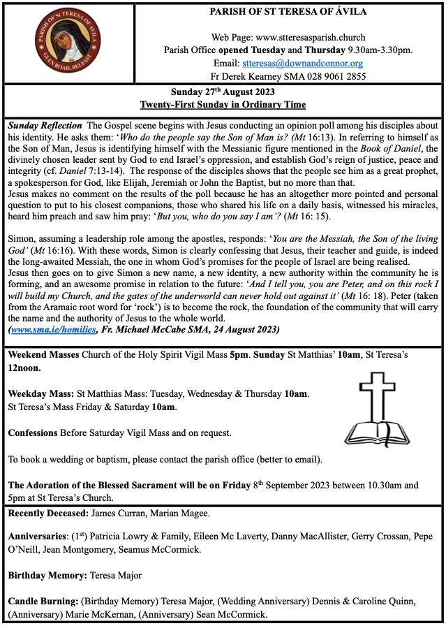 © The Parish of St Teresa of Ávila, Glen Road, Belfast 2018 – 2025