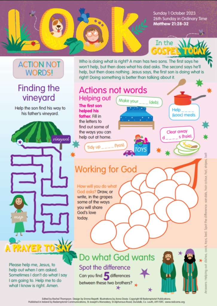 In The Gospel Today Sunday 1st October 2023 26th Sunday in Ordinary Time Matthew 21:28-32