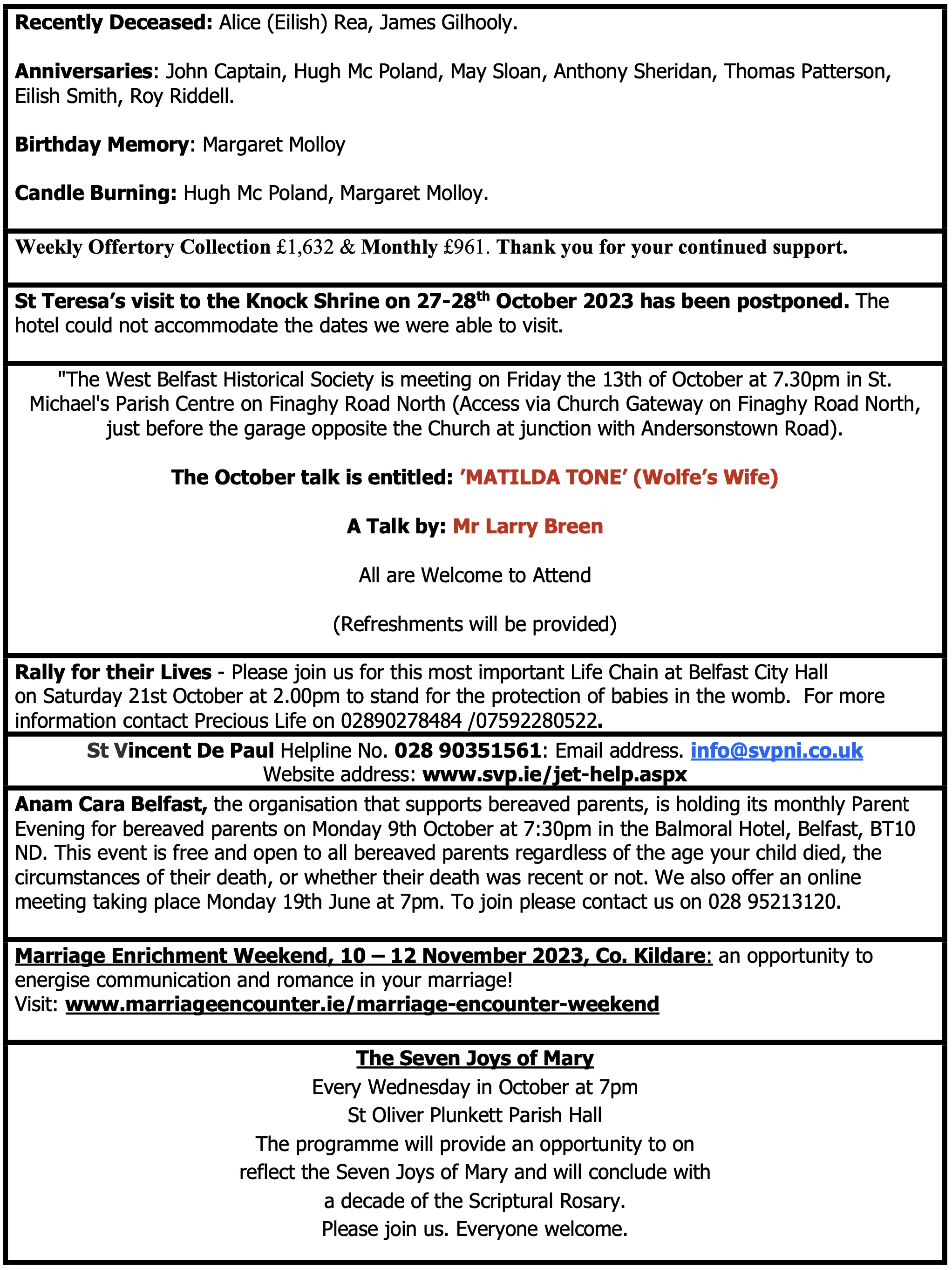© The Parish of St Teresa of Ávila, Glen Road, Belfast 2018 – 2025