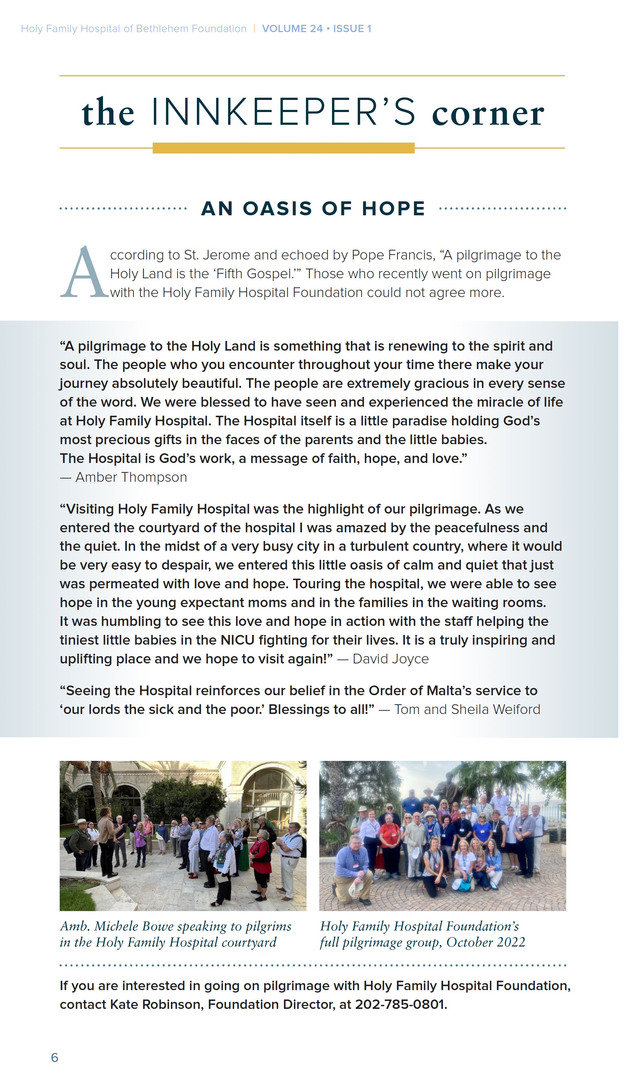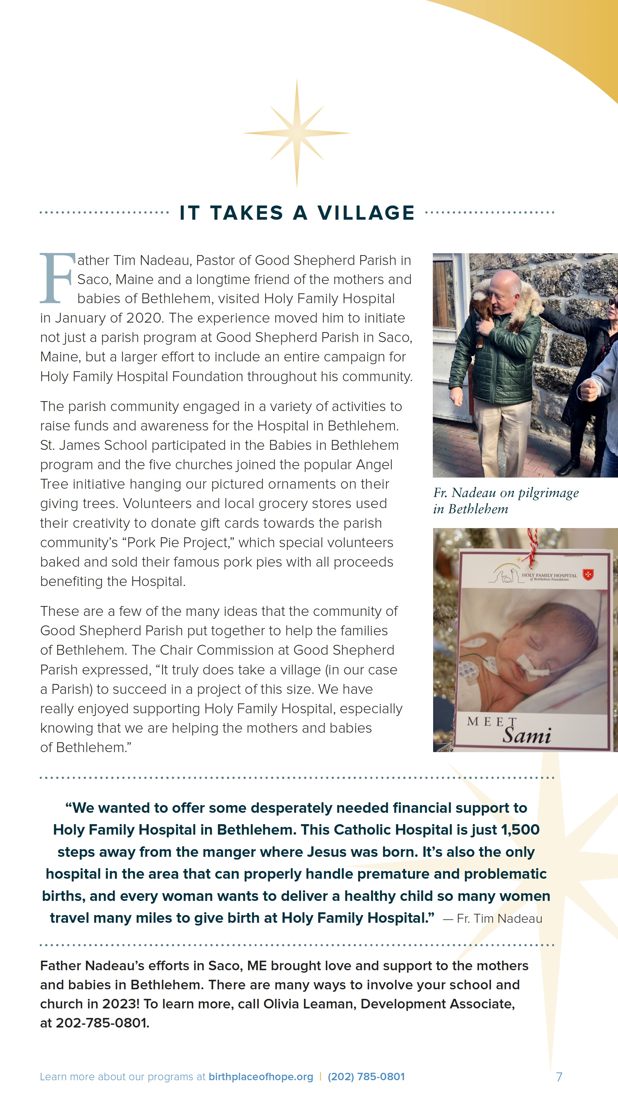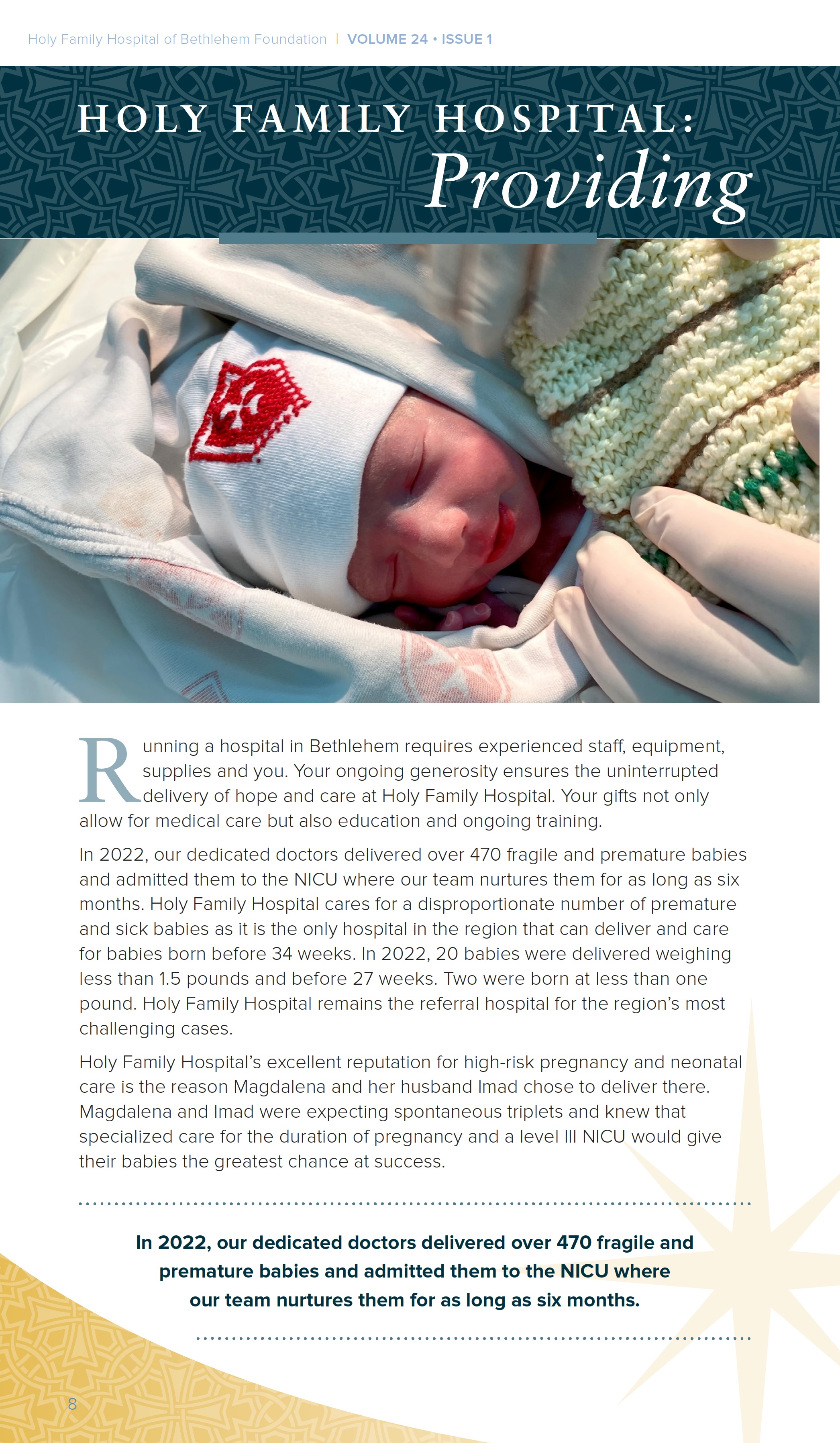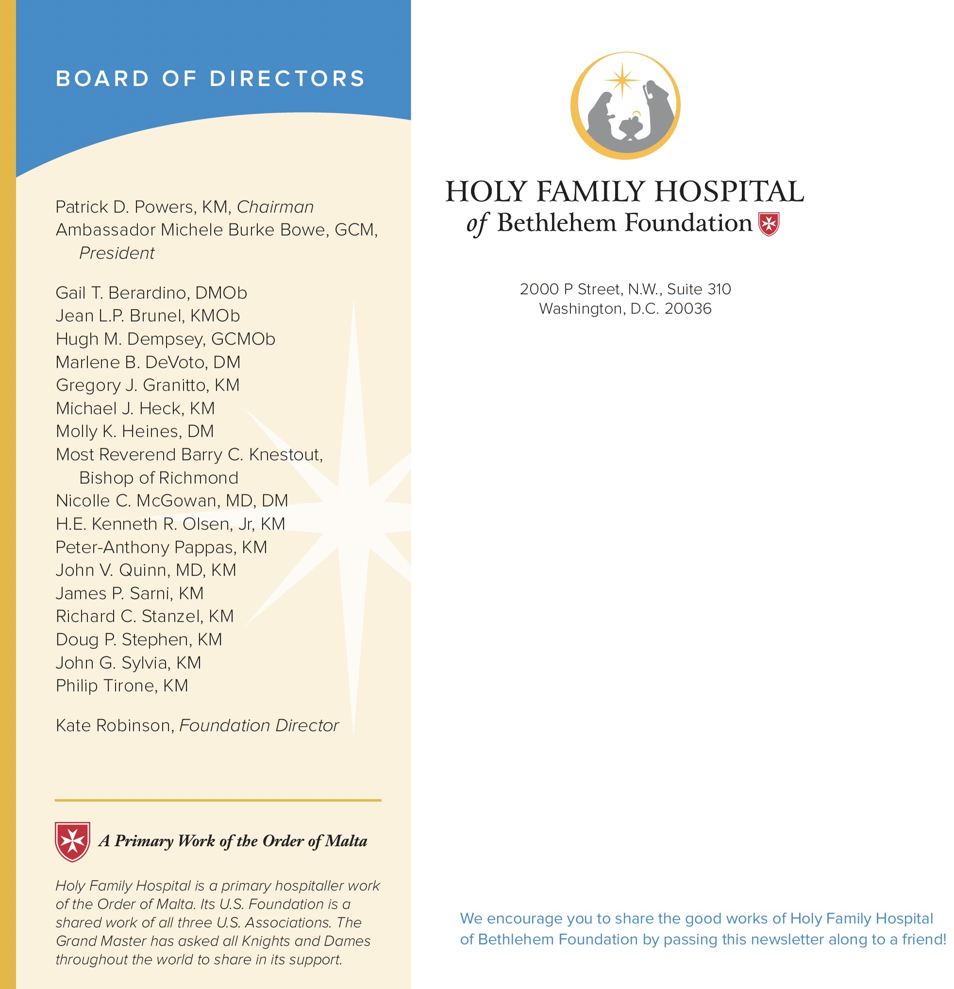 The Newsletter of the Holy Family Hospital of Bethlehem Foundation
