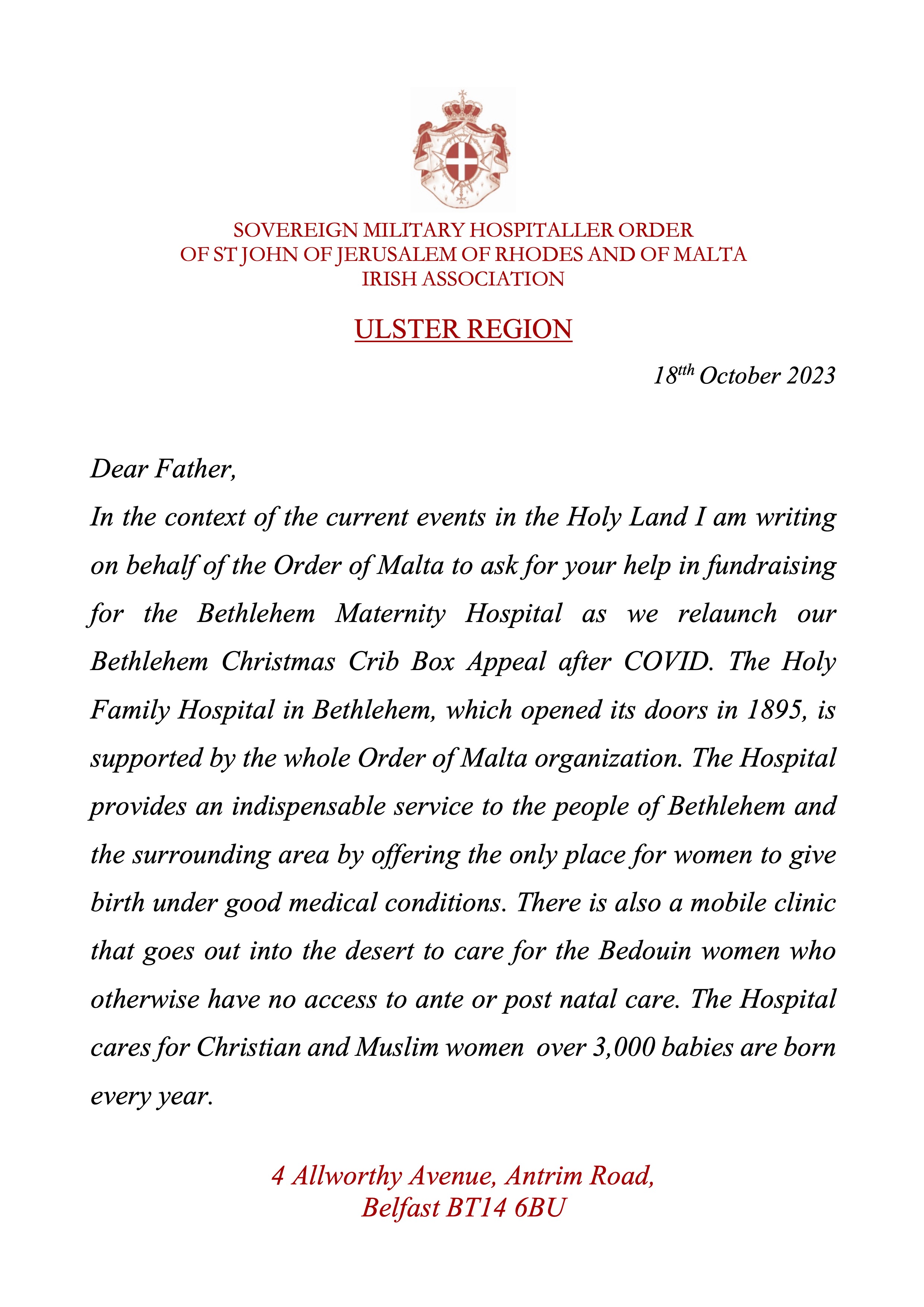 Order of Malta: Holy Family Hospital, Bethlehem