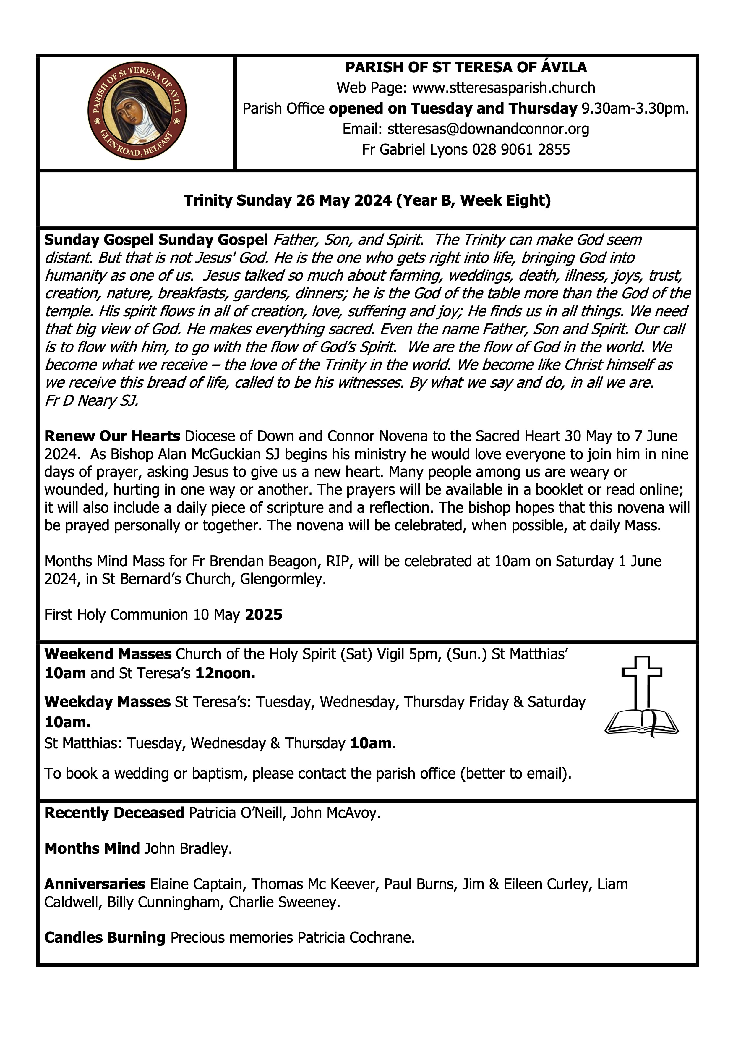 © The Parish of St Teresa of Ávila, Glen Road, Belfast 2018 – 2025All Rights Reserved