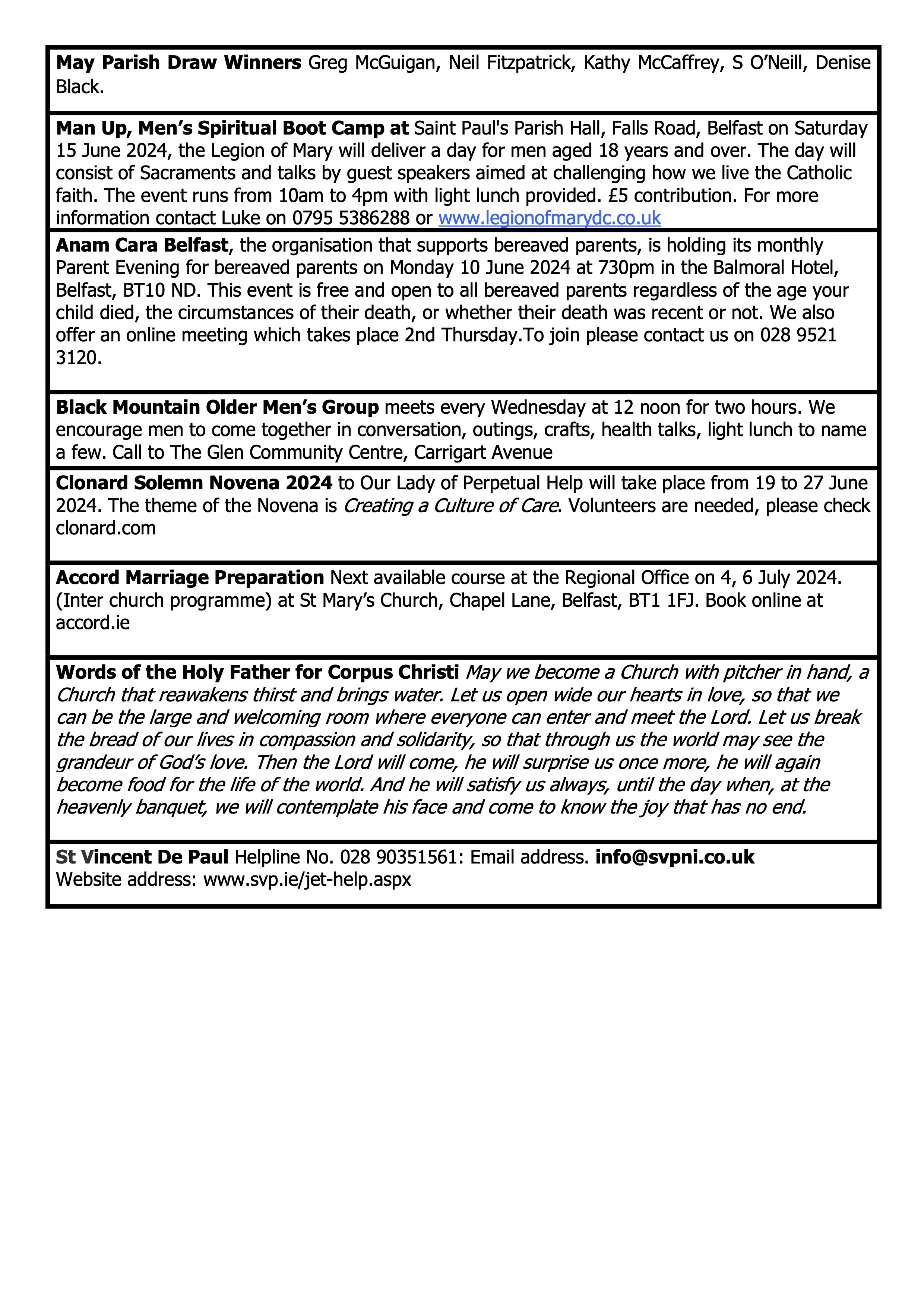 © The Parish of St Teresa of Ávila, Glen Road, Belfast 2018 – 2025All Rights Reserved