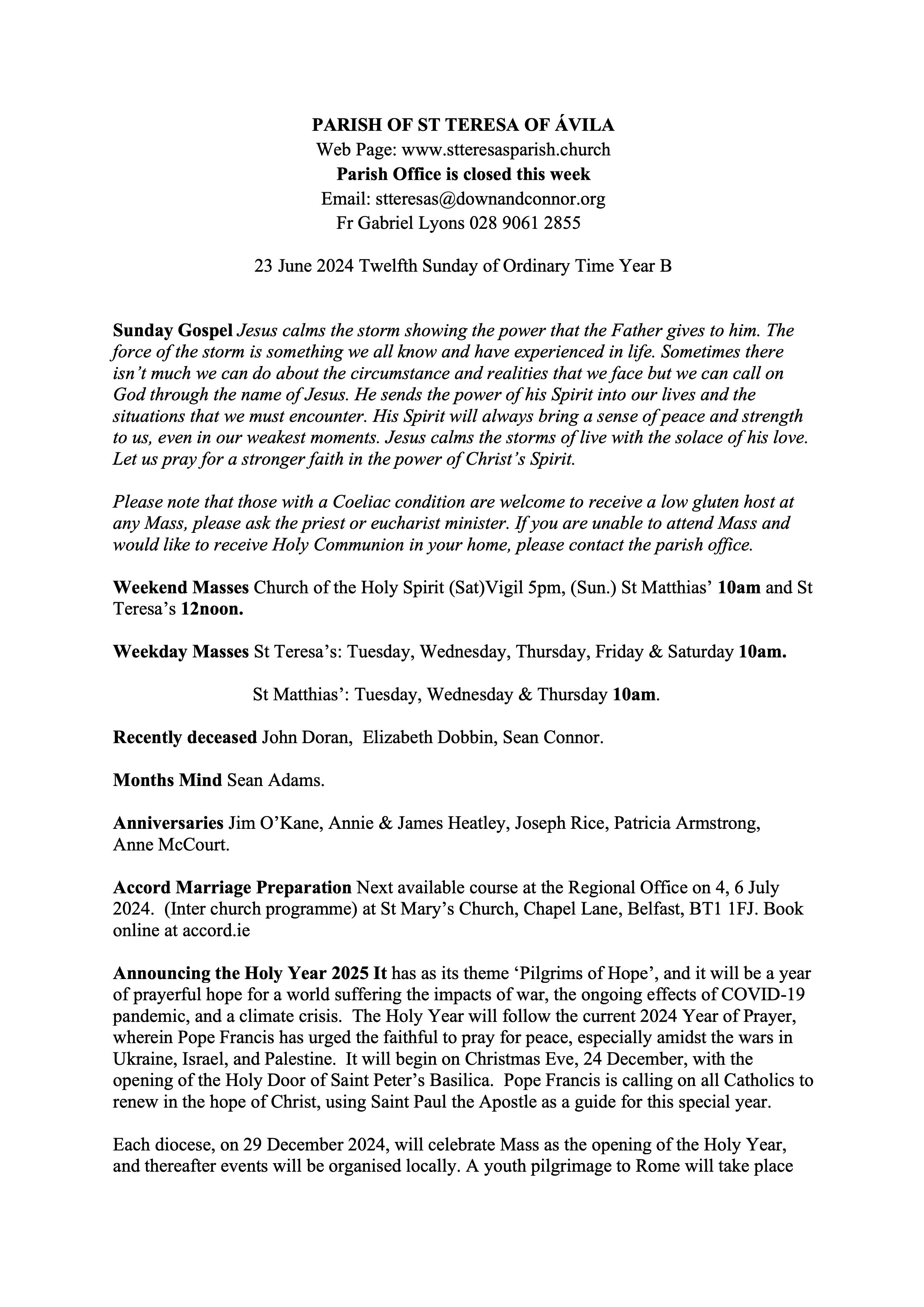 © The Parish of St Teresa of Ávila, Glen Road, Belfast 2018 – 2025All Rights Reserved