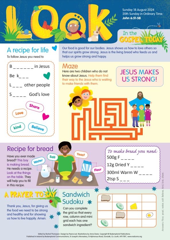 In The Gospel TodaySunday 18th August 2024 20th Sunday in Ordinary Time John 6:51-58