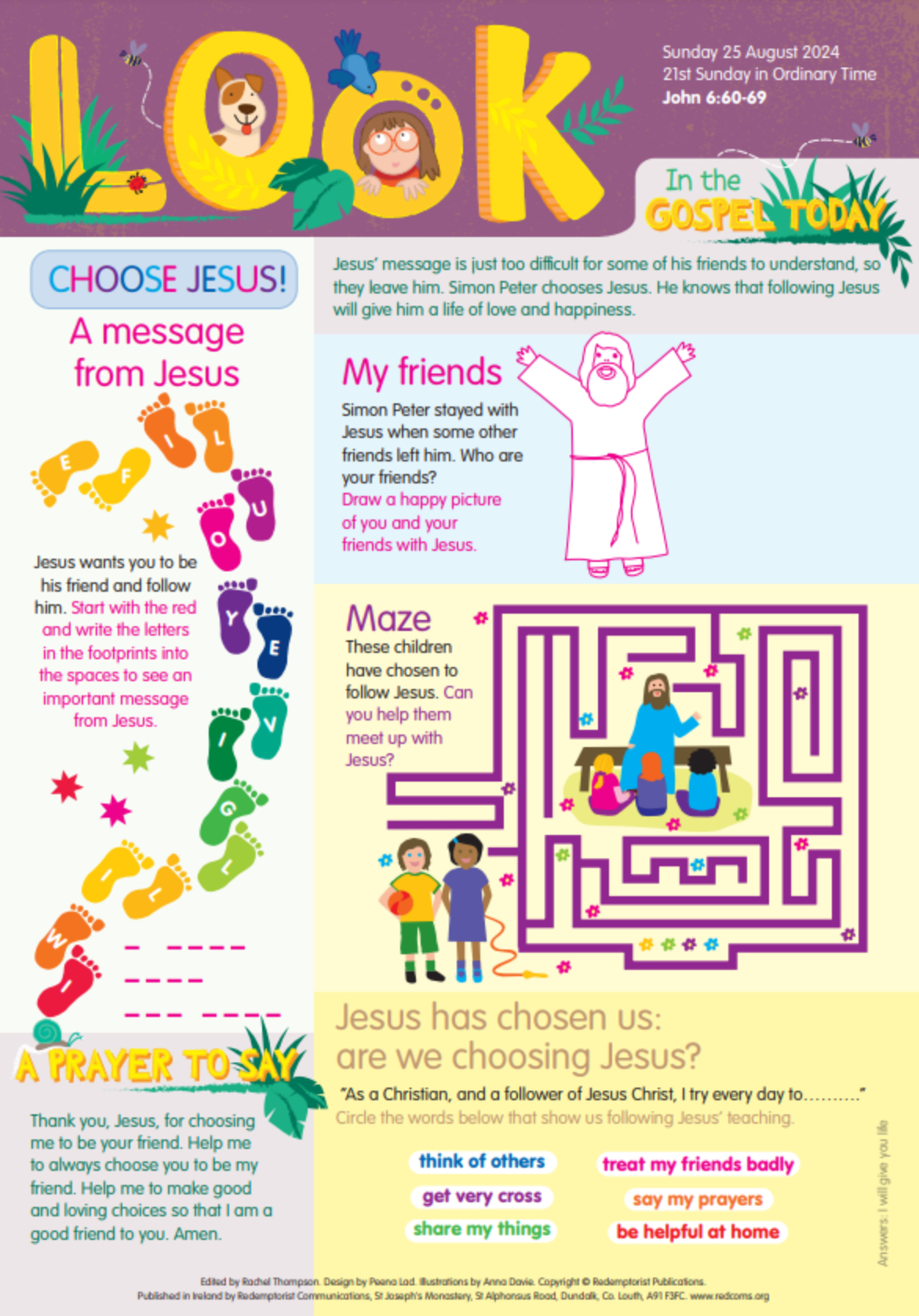 In The Gospel TodaySunday 25th August 2024 21st Sunday in Ordinary Time John 6:60-69