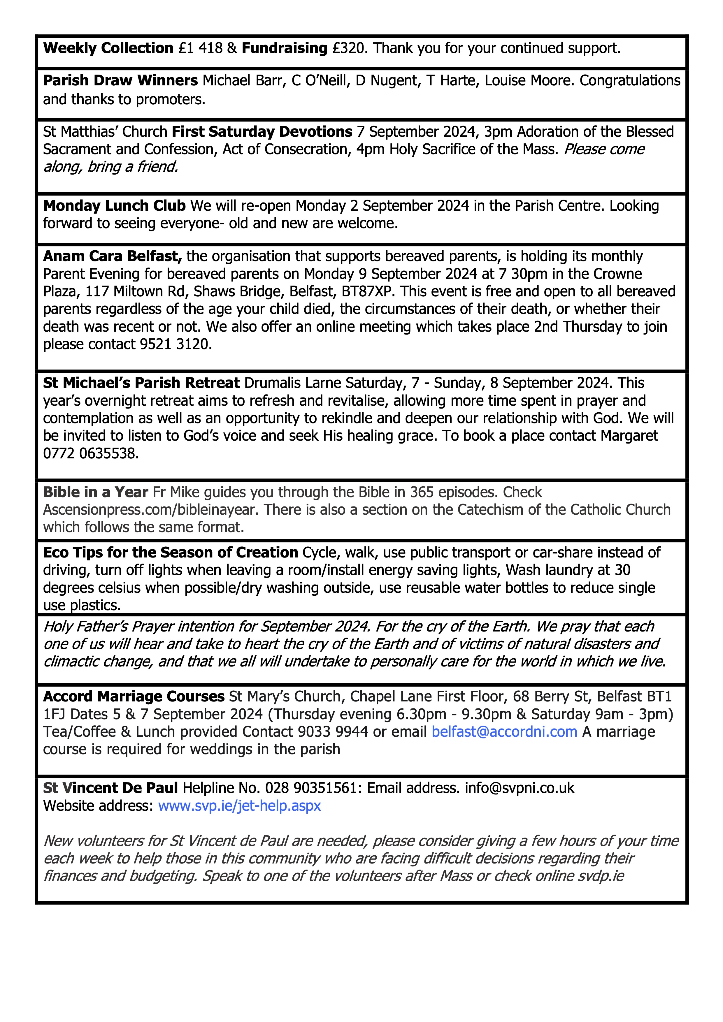 © The Parish of St Teresa of Ávila, Glen Road, Belfast 2018 – 2025All Rights Reserved