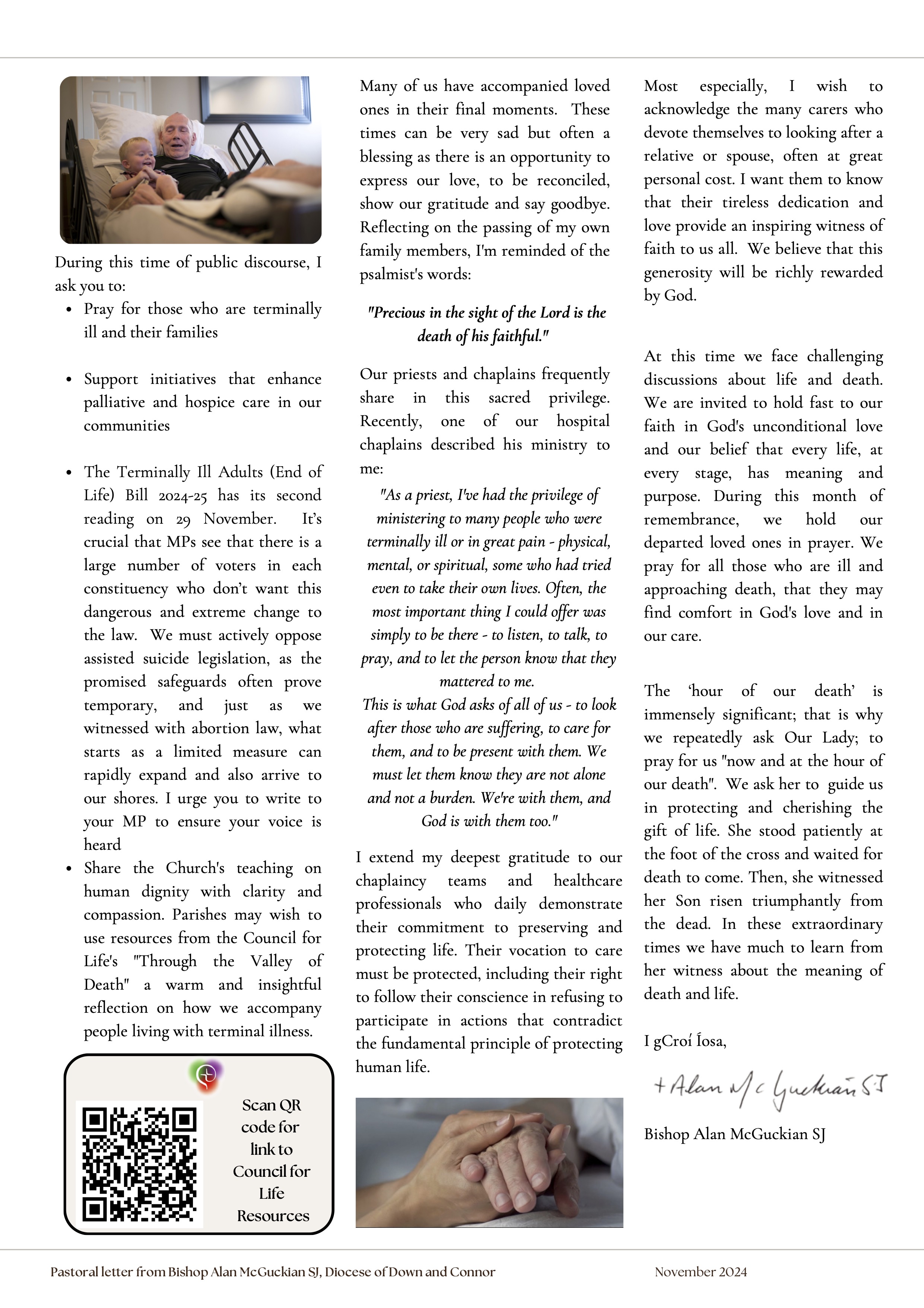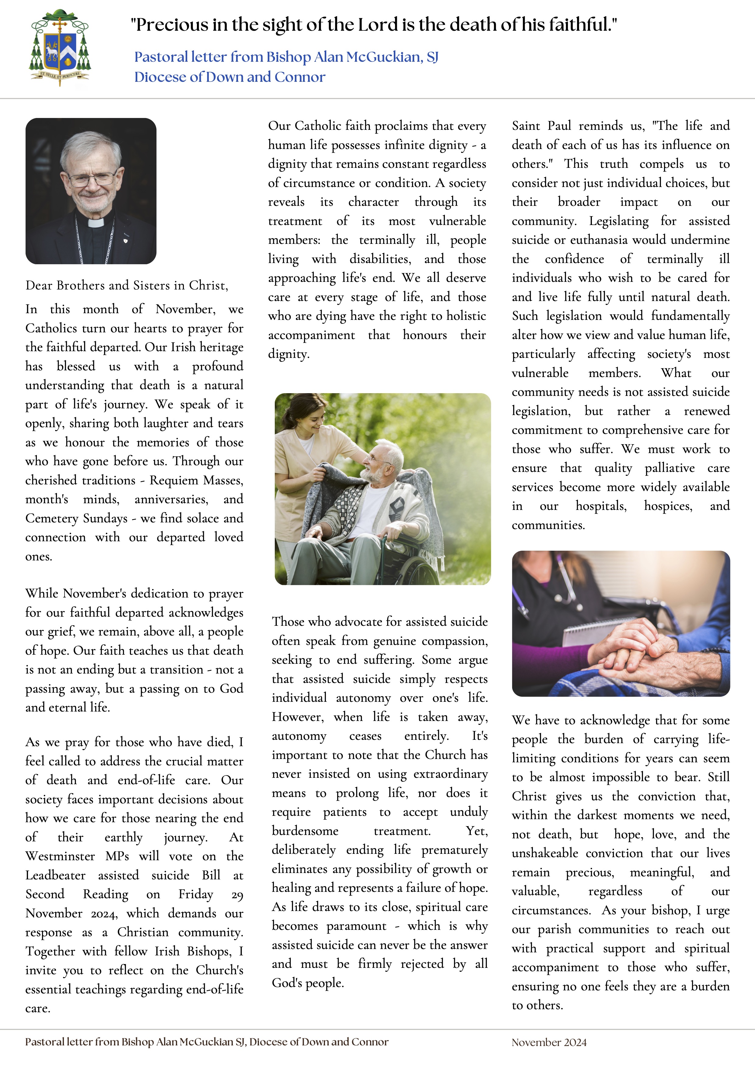 “Precious in the sight of the Lord is the death of his faithful.” – Pastoral letter from Bishop Alan McGuckian, SJ, Diocese of Down and Connor