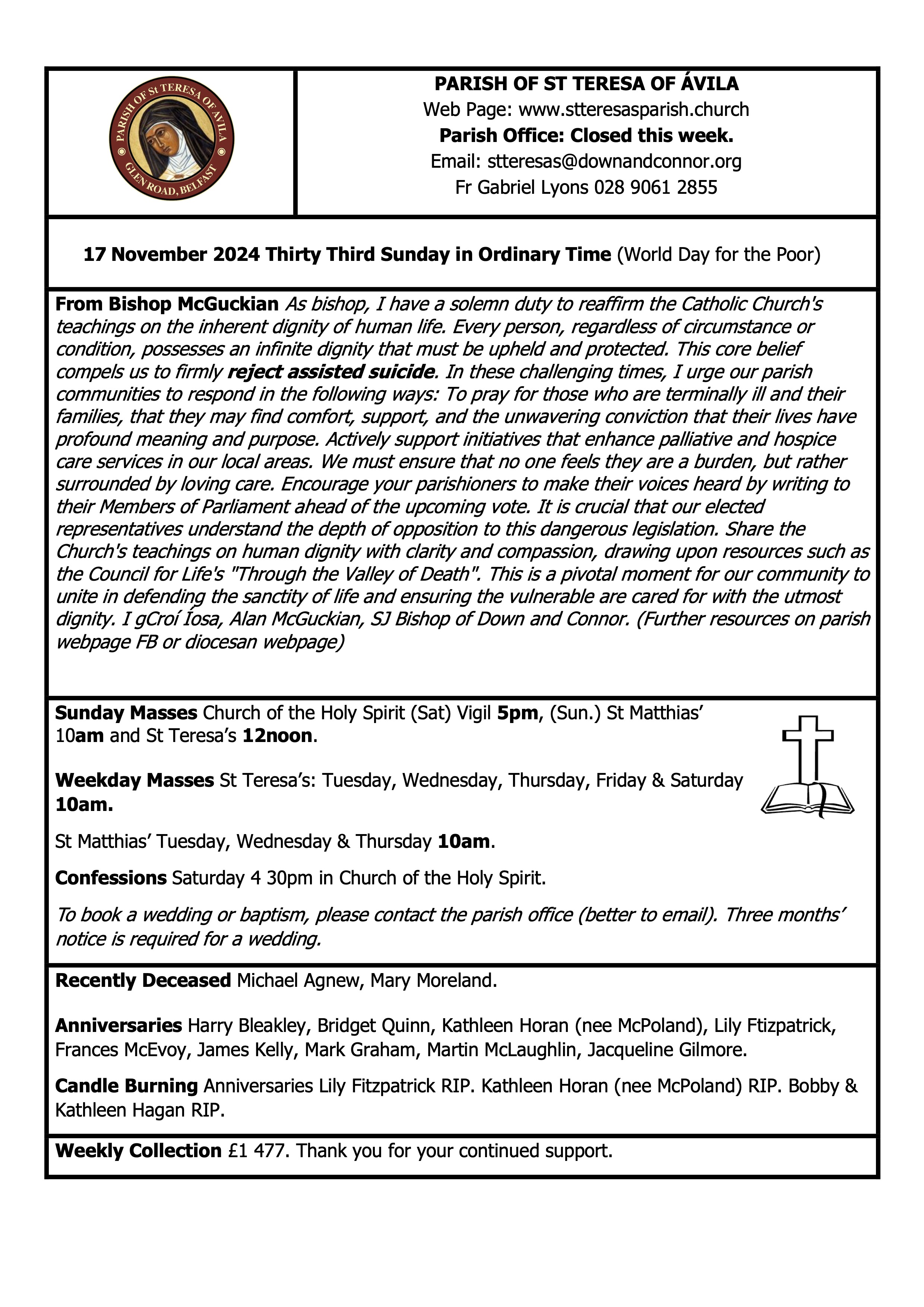 © The Parish of St Teresa of Ávila, Glen Road, Belfast 2018 – 2025All Rights Reserved