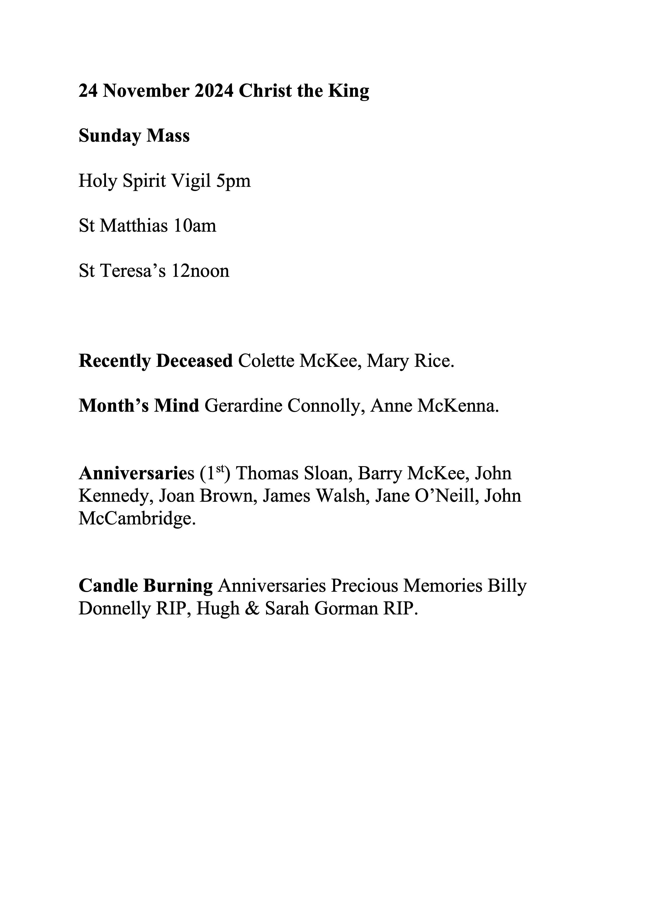 © The Parish of St Teresa of Ávila, Glen Road, Belfast 2018 – 2025All Rights Reserved