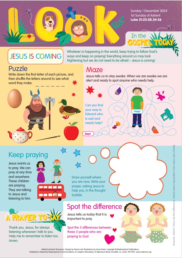 In the Gospel Today Sunday 1st December 2024 1st Sunday of AdventLuke 21:25-28, 34-36