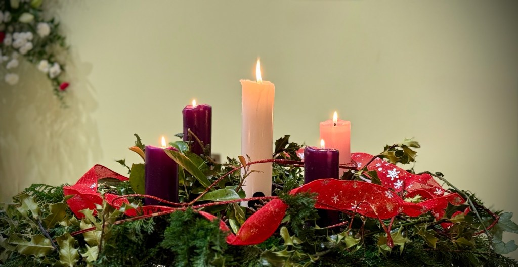 Today, on Christmas Day, we lit the white candle on the Advent wreath. The white candle, often called the “Christ Candle,” represents Jesus Christ and symbolizes purity, light, and the fulfillment of God’s promise. It is typically placed in the center of the wreath and is lit on Christmas Eve or Christmas Day to celebrate the birth of Christ.