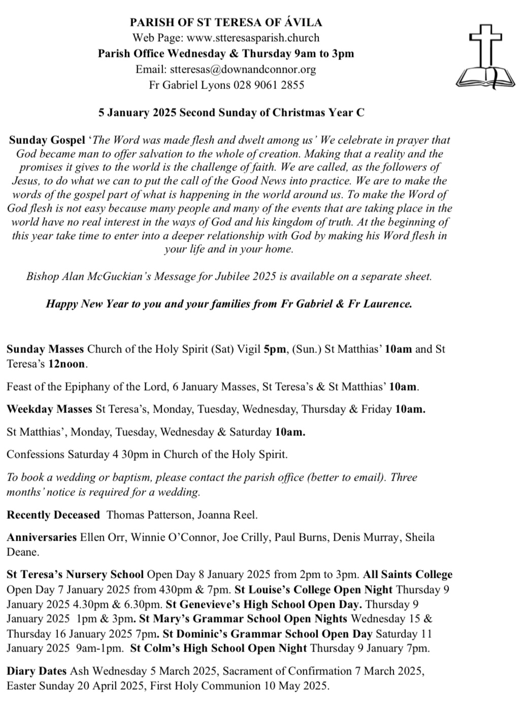 © The Parish of St Teresa of Ávila, Glen Road, Belfast 2018 – 2025All Rights Reserved