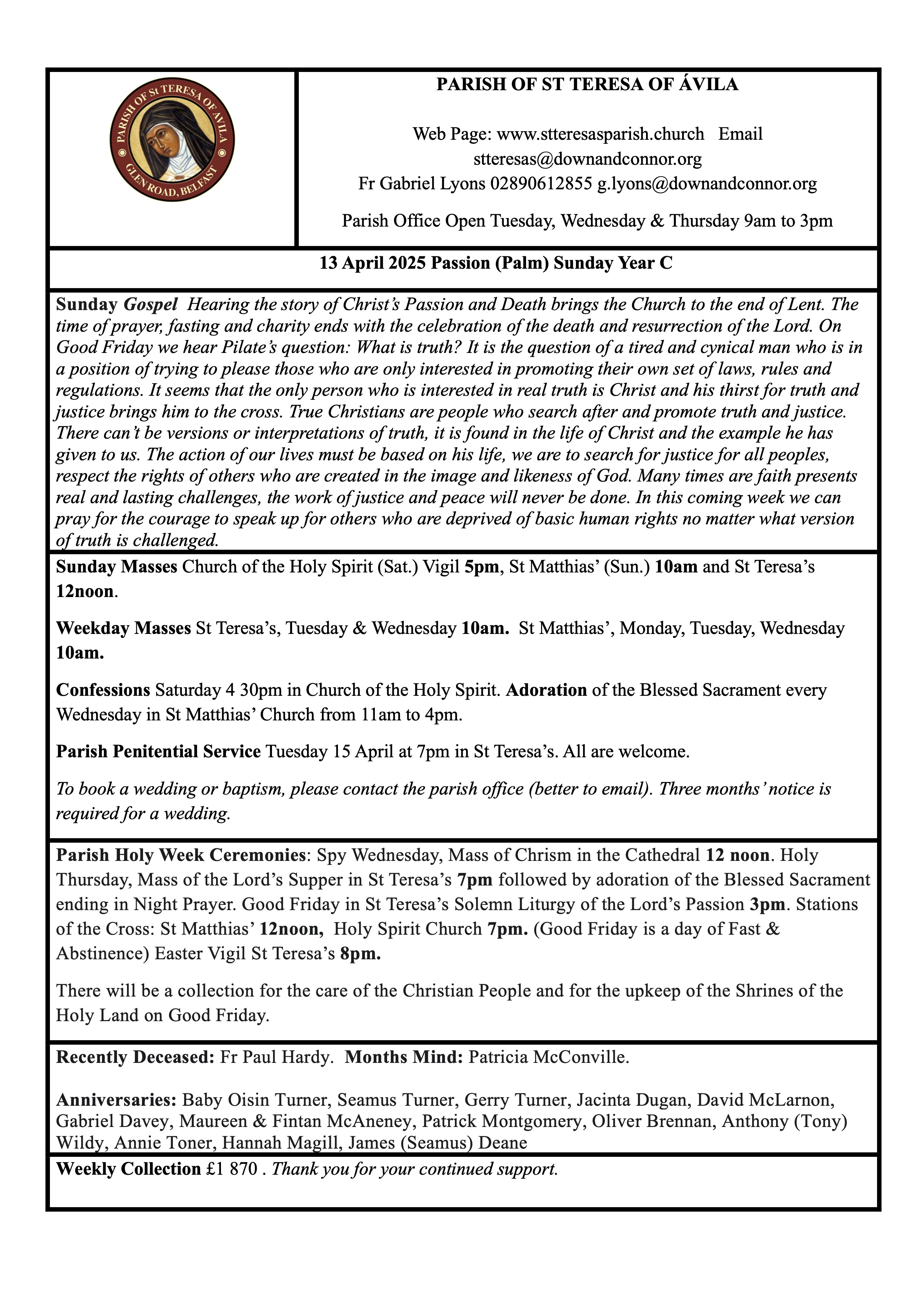© The Parish of St Teresa of Ávila, Glen Road, Belfast 2018 – 2025All Rights Reserved