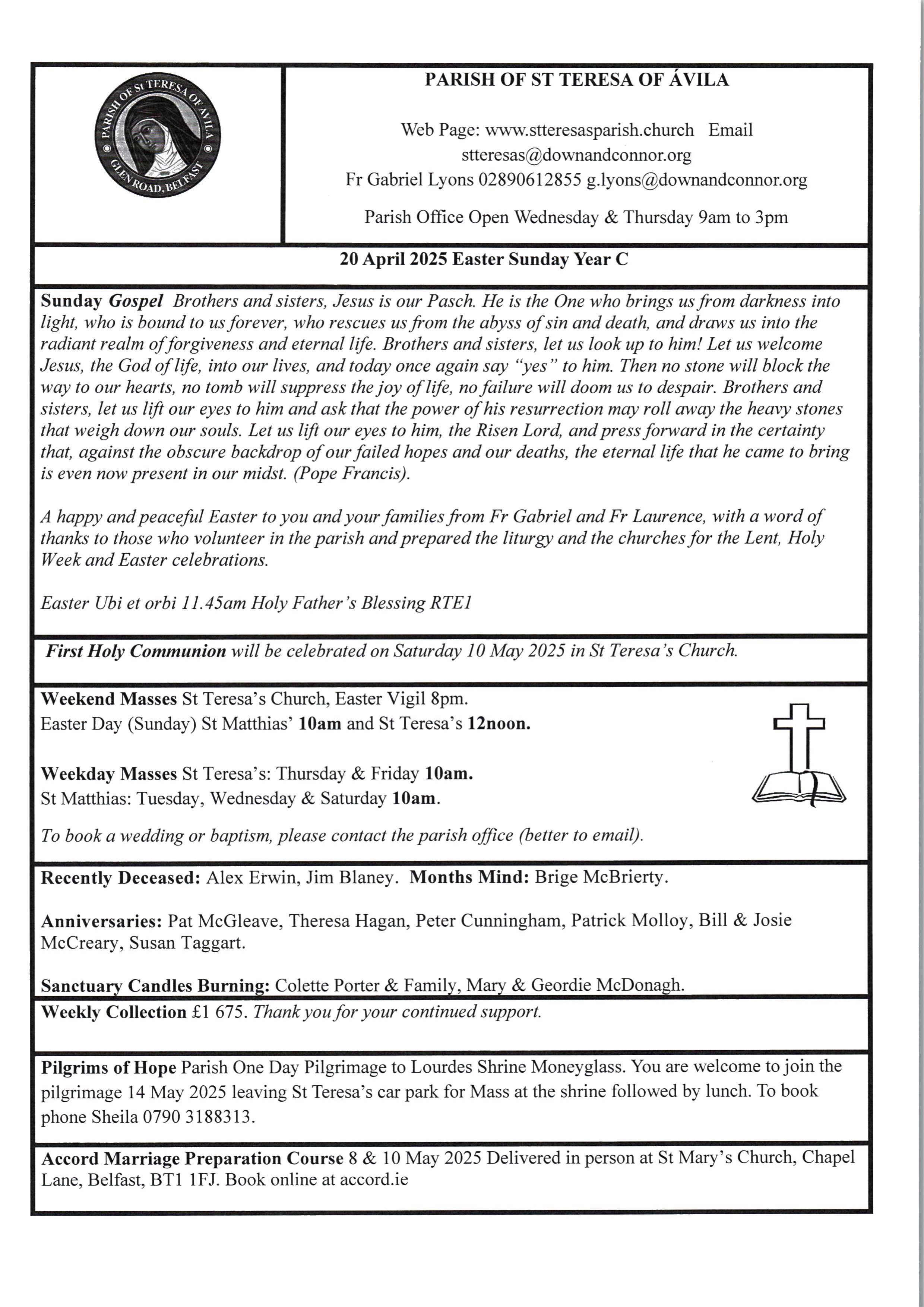 © The Parish of St Teresa of Ávila, Glen Road, Belfast 2018 – 2025All Rights Reserved