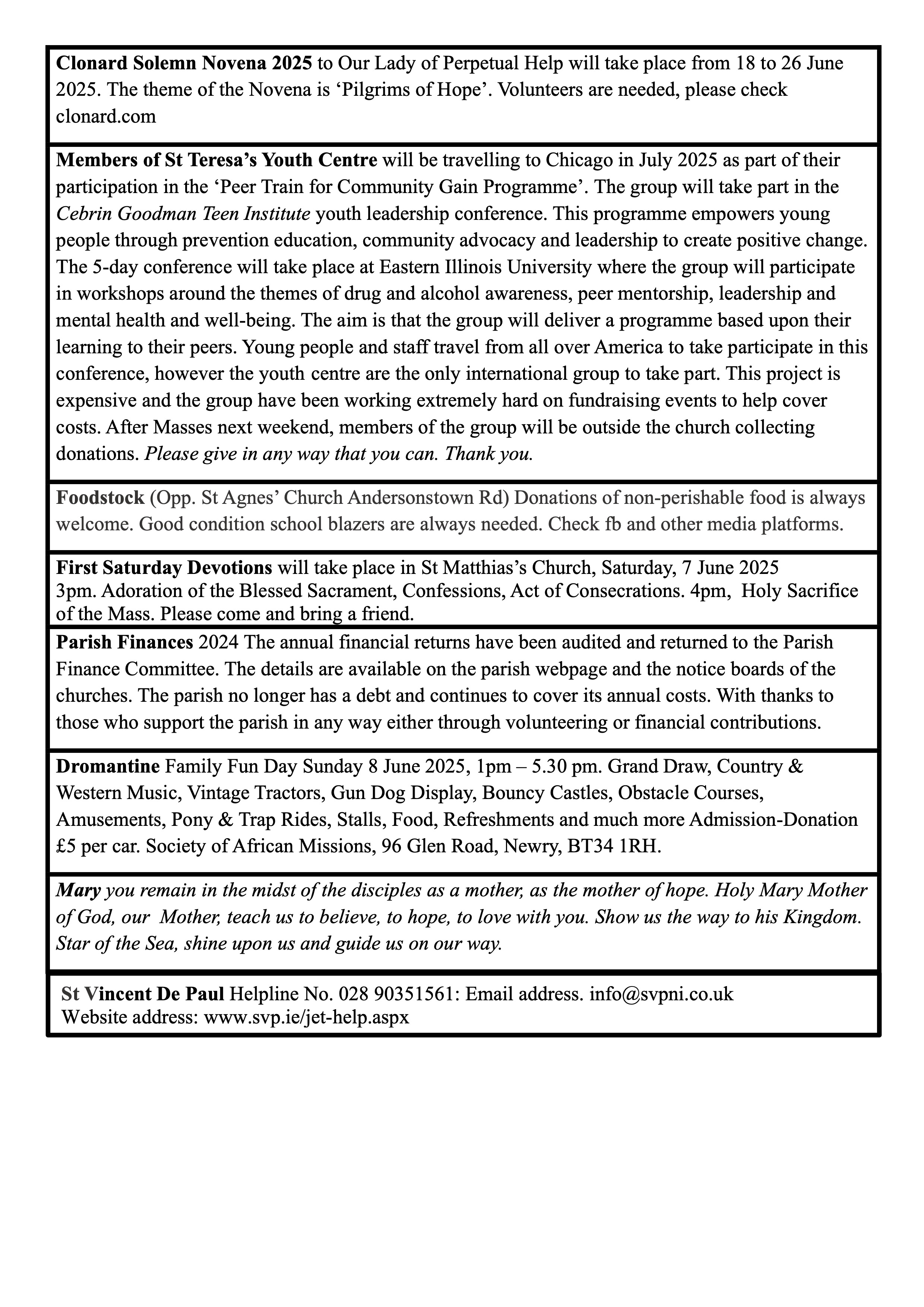 © The Parish of St Teresa of Ávila, Glen Road, Belfast 2018 – 2025All Rights Reserved