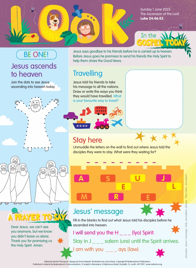 In the Gospel Today Sunday 1st June 2025Luke 24: 46 – 53The Ascension of the Lord
