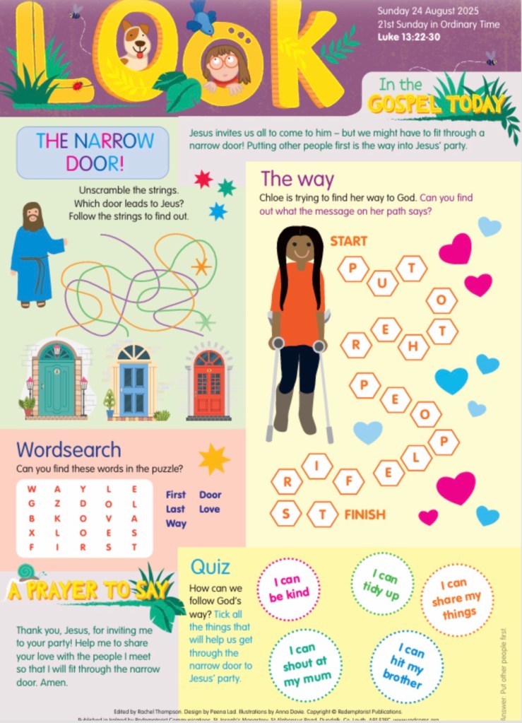 In the Gospel Today Sunday 24th August 2025 21st Sunday in Ordinary Time Luke 13: 22-30