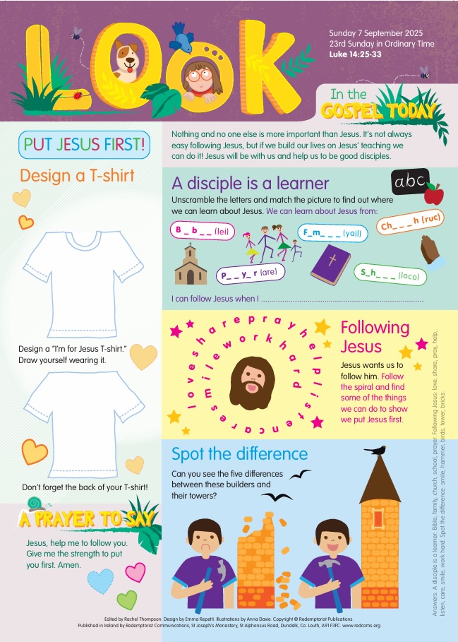 In the Gospel Today Sunday 7th September 2025 23rd Sunday in Ordinary Time Luke 14: 25-33