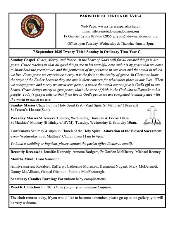 The St Teresa’s Parish Bulletin Sunday, 7th September 2025 Twenty-Third Sunday in Ordinary Time, Year C