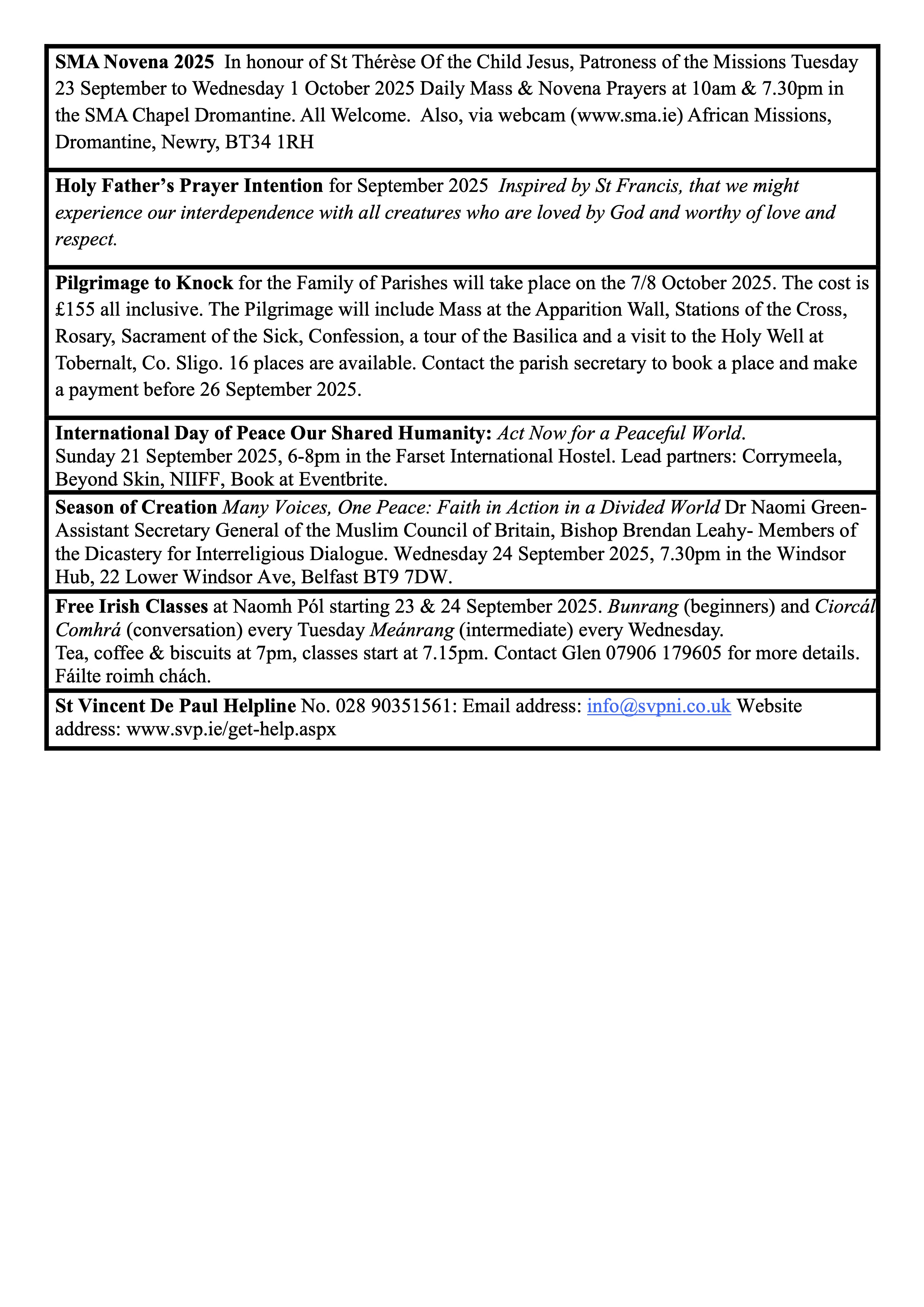 © The Parish of St Teresa of Ávila, Glen Road, Belfast 2018 – 2025All Rights Reserved