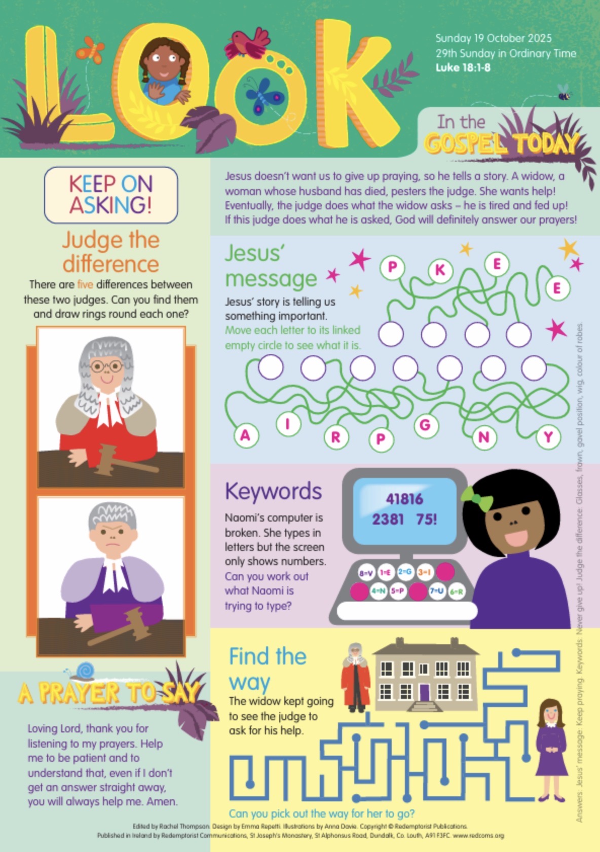 In the Gospel Today Sunday 19th October 2025 29th Sunday in Ordinary Time Luke 18:1-8