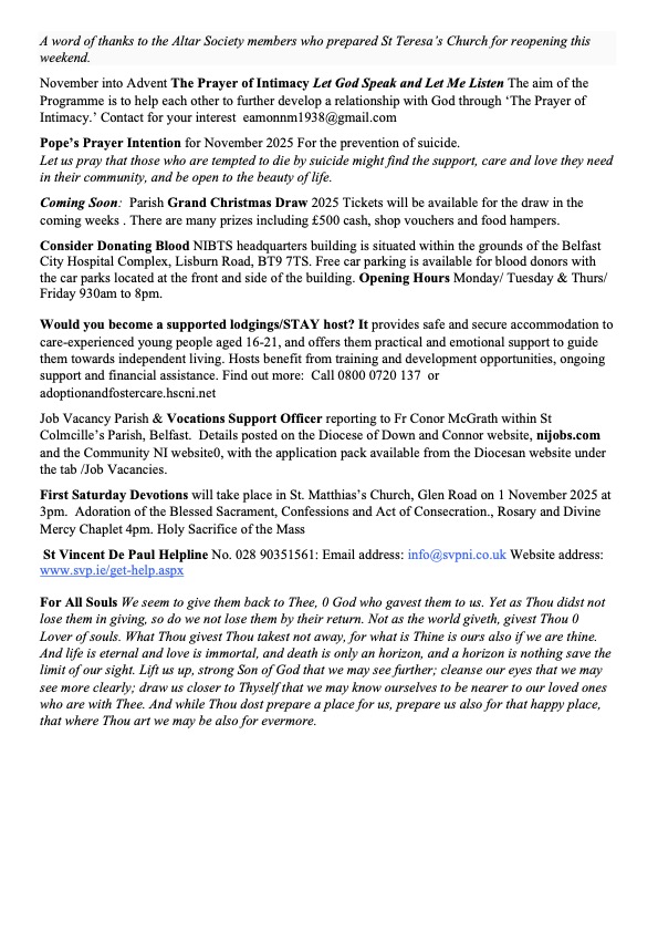 © The Parish of St Teresa of Ávila, Glen Road, Belfast 2018 – 2025All Rights Reserved