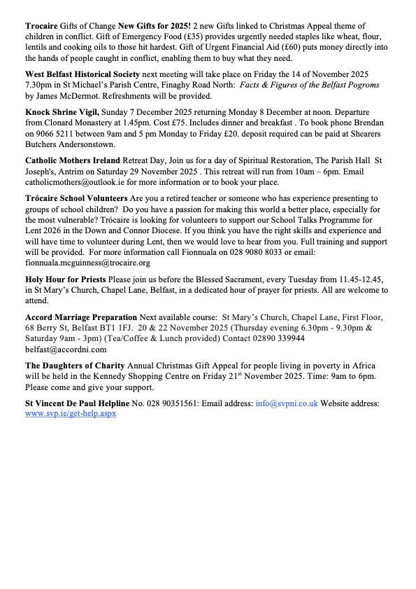 © The Parish of St Teresa of Ávila, Glen Road, Belfast 2018 – 2025All Rights Reserved