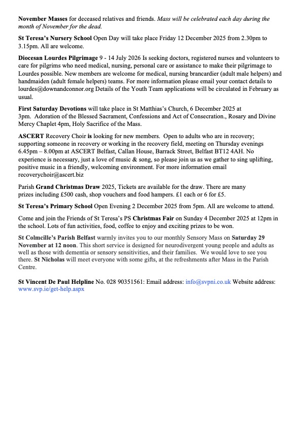 © The Parish of St Teresa of Ávila, Glen Road, Belfast 2018 – 2025All Rights Reserved