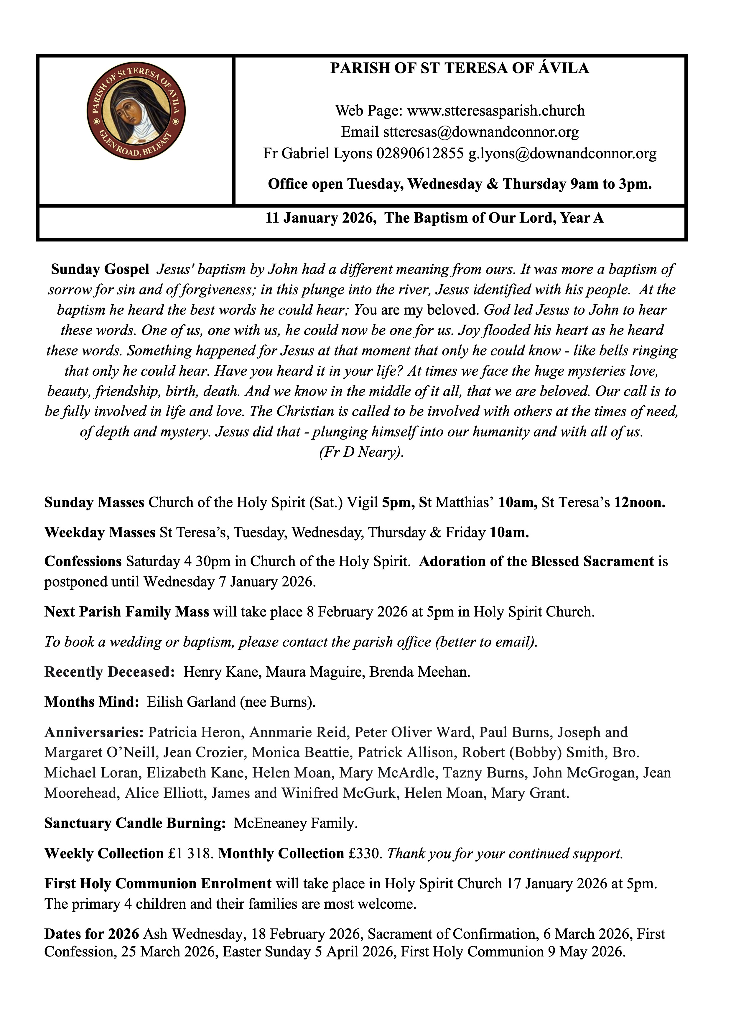 The St Teresa’s Parish Bulletin Sunday, 11th January 2026The Baptism of Our Lord, Year A