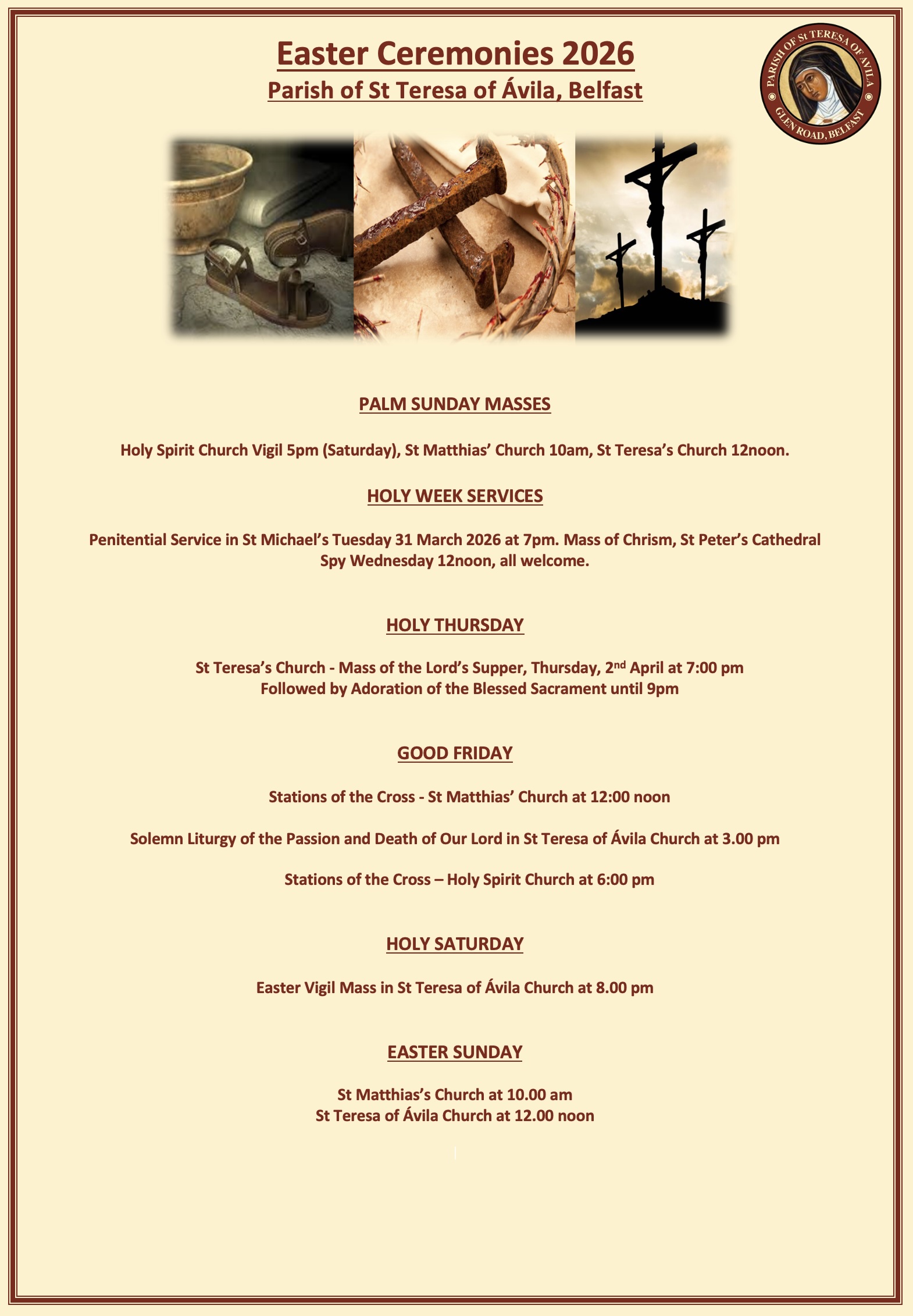 © The Parish of St Teresa of Ávila, Glen Road, Belfast 2018 – 2025All Rights Reserved